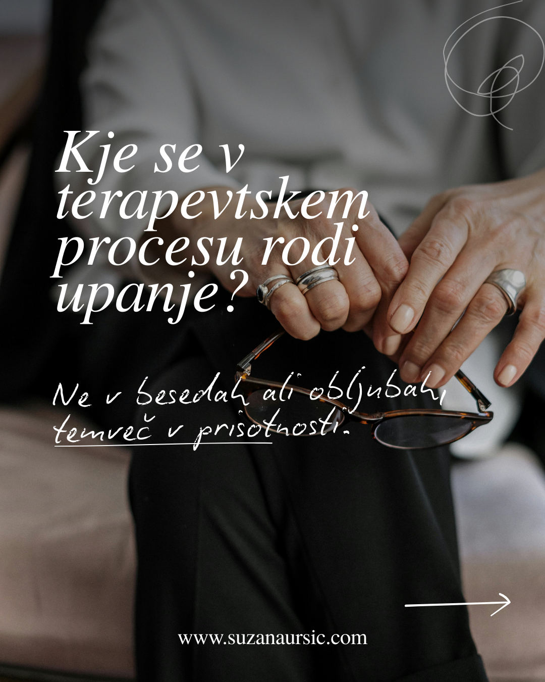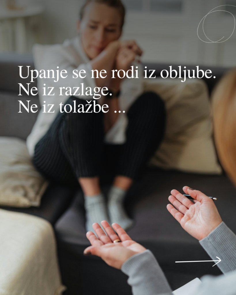 Upanje se ne rodi zato, ker bi terapevt rekel, da bo vse v redu. Rodi se, ker stranka prvič začuti, da v svoji bolečini ni sama. Da je nekdo ob njej dovolj stabilen, dovolj prisoten in dovolj človeški, da lahko je tudi tam, kjer je težko.