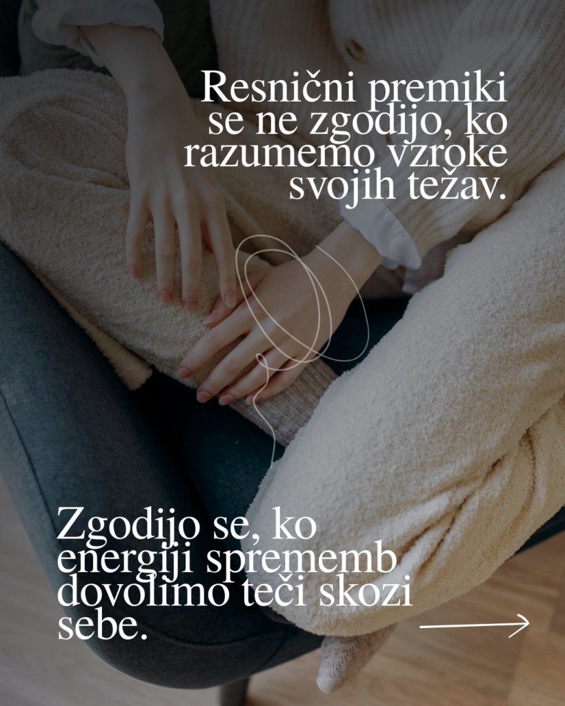 V terapevtskem procesu pogosto precenjujemo pomen vsebine in podcenjujemo pomen odnosa. A resnični premiki se pogosto ne zgodijo takrat, ko človek razume, temveč takrat, ko začuti in uspe energijo sprememb spustiti skozi sebe.